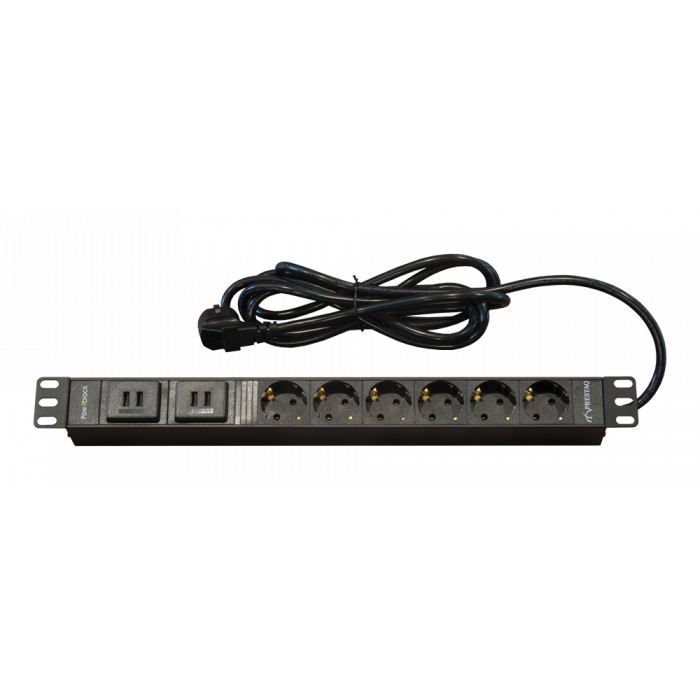 19 inch PDU 6x Schuko horizontaal met 4x USB poorten