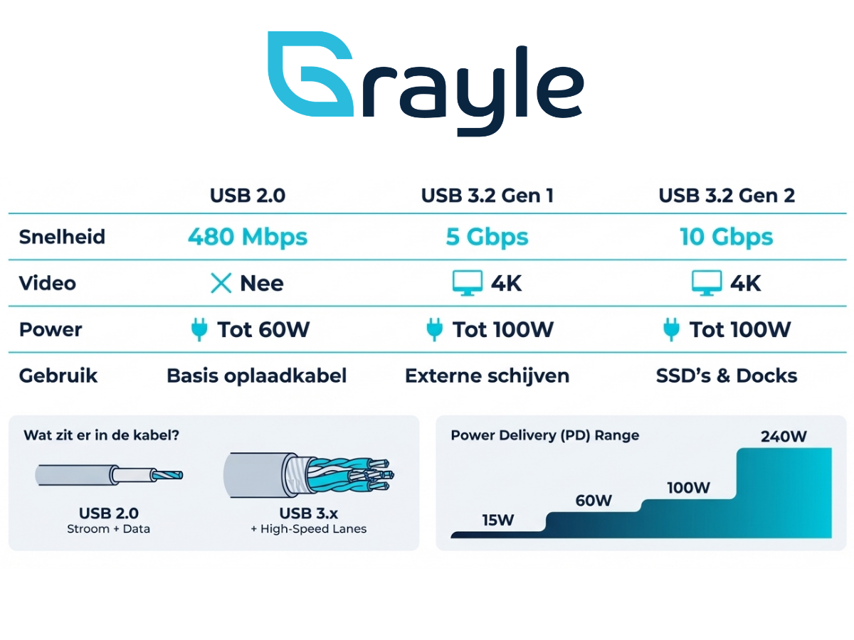Daarnaast ondersteunt de kabel 3A laadstroom, waardoor hij gebruikt kan worden voor het opladen van veel USB-C apparaten. Door deze combinatie van eigenschappen wordt de kabel vaak gekozen als beste usb c kabel voor situaties waar bereik, stabiliteit en eenvoudig gebruik belangrijk zijn.