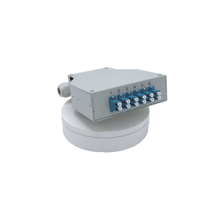 De box kan bovendien deel uitmaken van een modulair uitgeruste 24 fiber patch panel structuur wanneer deze gecombineerd wordt met andere DIN-mount componenten.