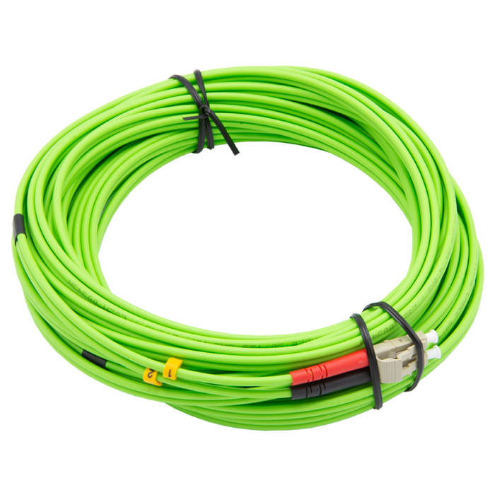 Deze OM5 LC-LC patchkabel van 10 meter is ontwikkeld voor installaties waarbij netwerkcomponenten op grotere afstand van elkaar worden geplaatst.