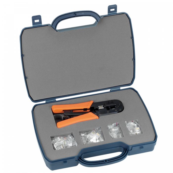 Maak kennis met onze ultieme Toolbox, perfect voor elke installateur. Deze uitgebreide set bevat alles wat u nodig heeft voor professionele netwerkinstallaties: een krimptang voor nauwkeurige connectoren, een UTP/STP kabelstripper voor snelle en efficiënte kabelvoorbereiding, 20 RJ12 plat/soepel connectors, 20 RJ12 rond/soepel connectors en 15 RJ45 plat/soepel connectors