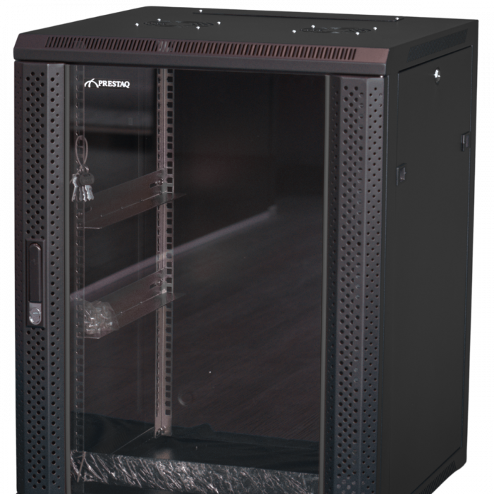 De geventileerde structuur garandeert optimale warmteafvoer, terwijl de glazen voordeur met vergrendeling niet alleen beveiliging biedt, maar ook direct zicht geeft op de binnenzijde van de kast.