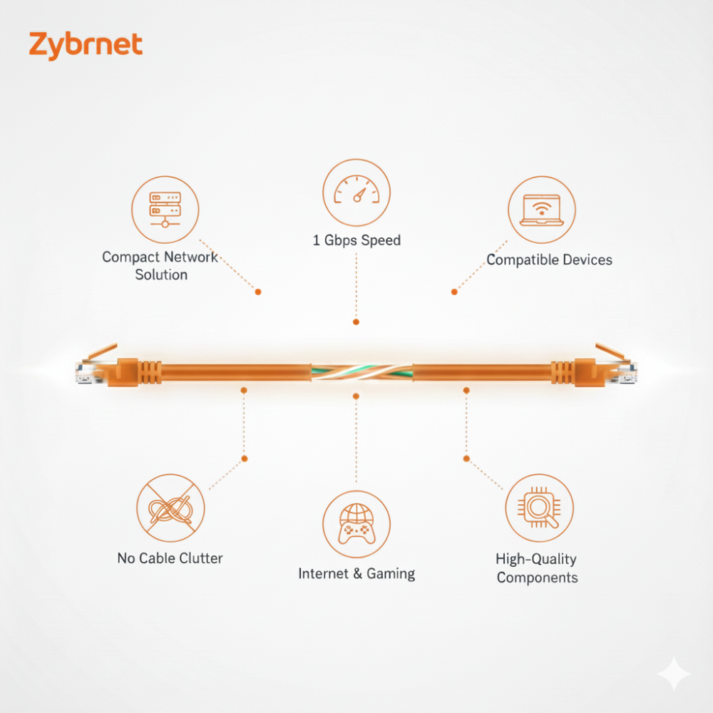 De Zybrnet Cat5e U/UTP patchkabel 3 meter oranje is ontwikkeld voor korte tot middellange trajecten waar je een nette, overzichtelijke Ethernetverbinding wilt realiseren zonder onnodige kabellussen.