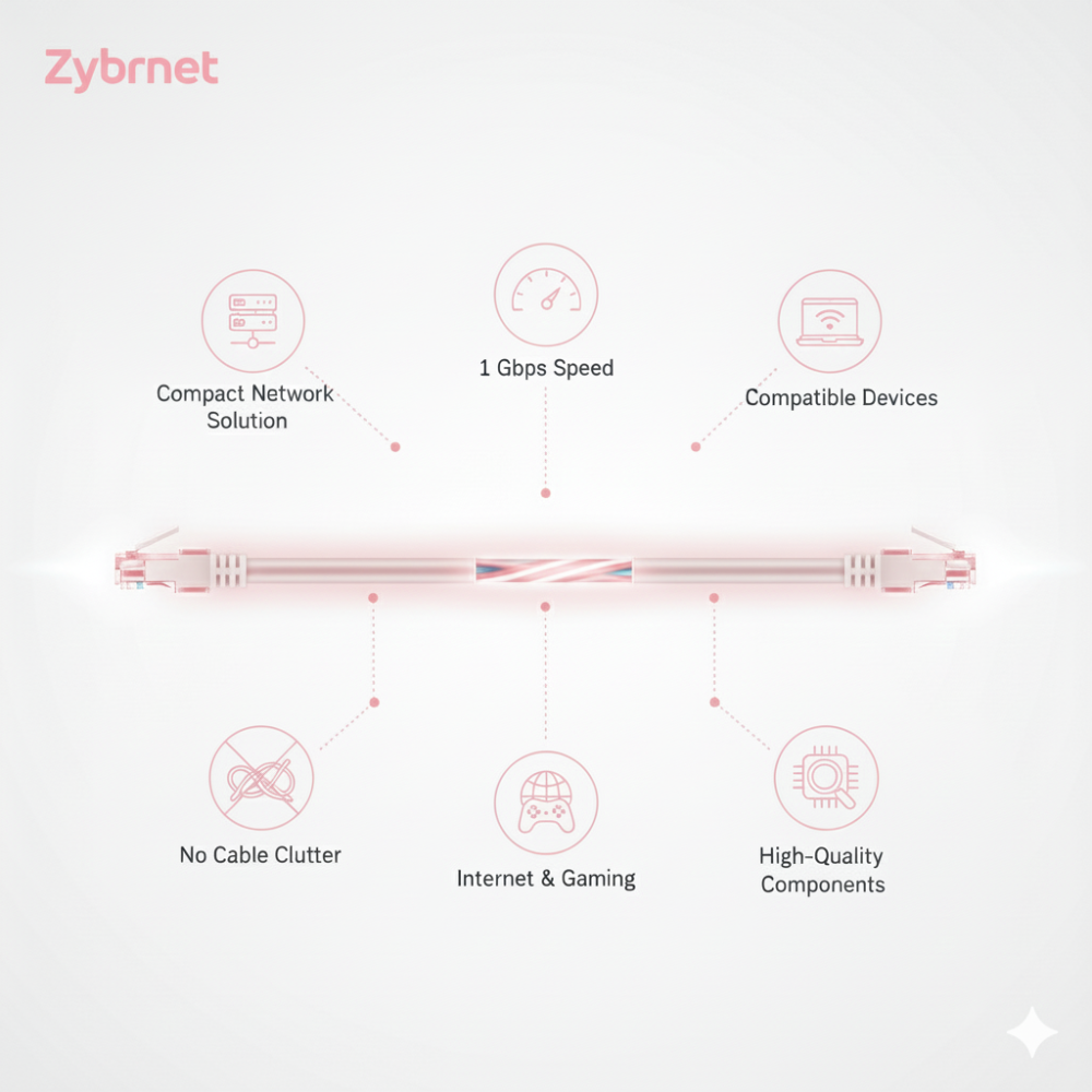 De Zybrnet Cat5e U/UTP patchkabel 1m roze is ontworpen voor korte verbindingen waarbij overzicht en nette bekabeling belangrijk zijn.