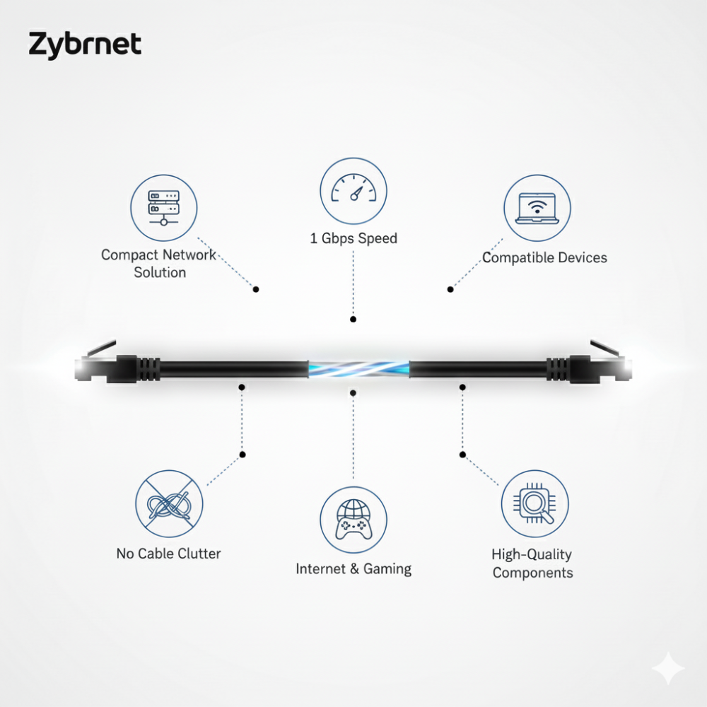 De Zybrnet Cat5e U/UTP patchkabel 7.5 meter zwart is bedoeld voor korte tot middelgrote trajecten waar je net wat extra bereik nodig hebt zonder een lange overbrugkabel te gebruiken. De lengte van 7.5 meter biedt voldoende ruimte om apparaten netjes met elkaar te verbinden in één werkplekzone, racksectie of kantoorruimte.