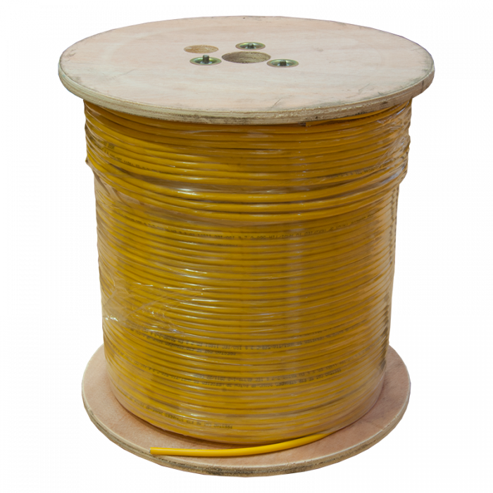 Deze gele patchkabel op haspel heeft een lengte van 500 meter en is ontwikkeld voor efficiënt gebruik op bouwlocaties, in serverruimtes en technische installaties.